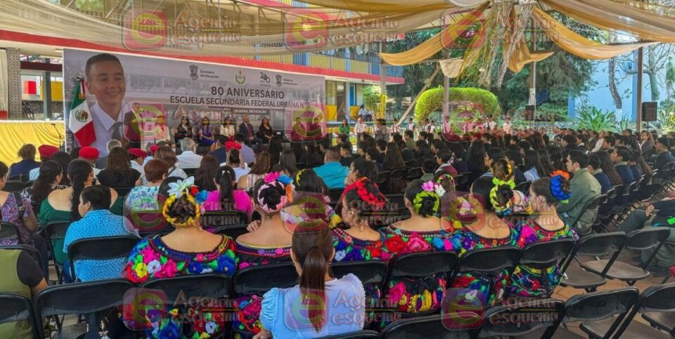 Uruapan, Michoacán, 4 de mayo de 2024.- La educación, sin lugar a dudas, es el mejor vehículo para la paz, la justicia y para las nuevas generaciones, para que tengan un futuro mejor, señaló la titular de la Secretaría de Educación en el Estado (SEE), Gabriela Molina Aguilar, en la ceremonia conmemorativa del 80 aniversario de la Escuela Secundaria Federal Urbana número 1 “Lázaro Cárdenas”.