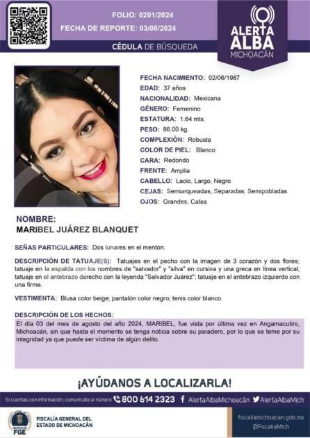 Penjamillo, Michoacán, 24 de febrero de 2025.- El 3 de agosto de 2024 se reportó la privación ilegal de la libertad de la regidora en Penjamillo Maribel Juárez Blanquet, mientras se dirigía a la ciudad de Morelia.