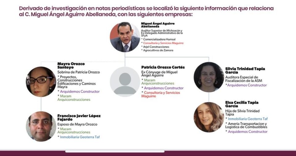 Y es que recordó, a partir de una investigación periodística, se detectó que las empresas Maram Arquiconstrucciones y Arquidemos Constructor tienen nexos cercanos con Aguirre Abellaneda y a su vez, estas empresas fueron contratadas por el alcalde Alfonso Martínez Alcázar para ejecutar obras para Morelia.