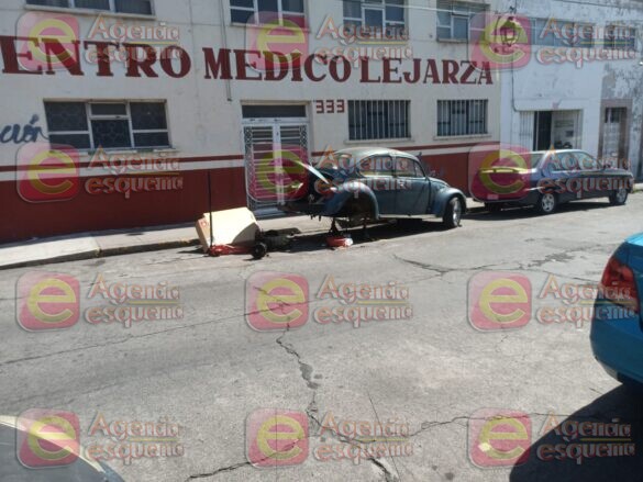 Morelia, Mich.-14 de febrero del 2023.-En un enorme taller mecánico han convertido la calle Juan José de Lejarza, ante la autoridad que se hace de la vista gorda para no ver y atender el problema.