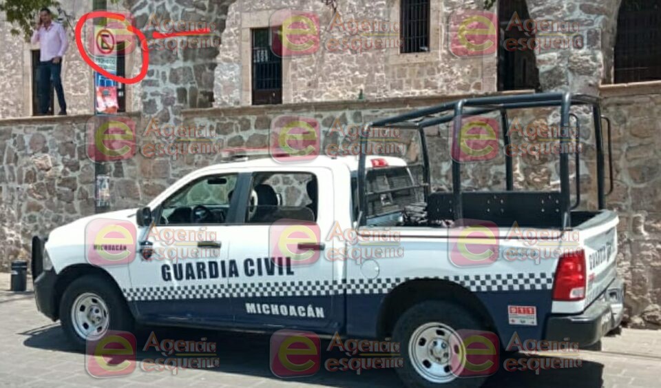 Morelia, Michoacán. -02 de junio del 2023.-Si se tratara de un turista o de un automovilista común y corriente ya lo hubieran infraccionado, pero como se trata de sus colegas pues el Comisionado Cussi ¿ahí no manda a sus muchachos de tránsito para que hagan su trabajo? Ahí está muy claro el señalamiento de que se prohíbe estacionarse, es en pleno Centro, pero a ellos ¿quién les dice algo?
