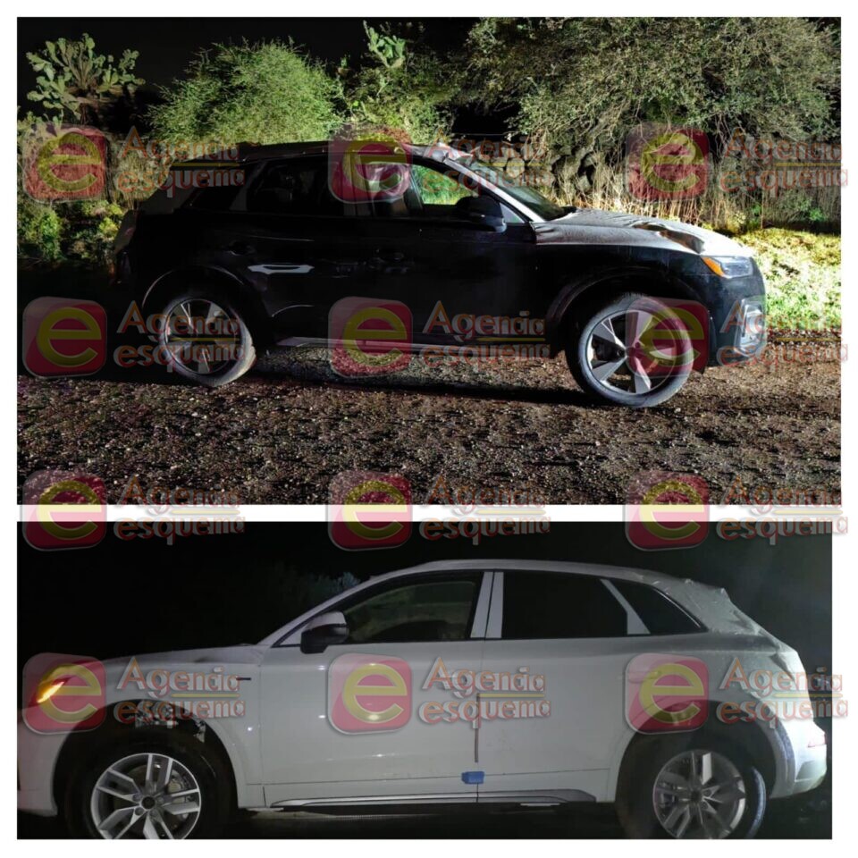 Dichas unidades, nuevecitas, Audi modelo Q5, fueron abandonadas por los ladrones, en un camino de terracería donde presuntamente serían trasladadas a otros puntos del Estado, pero al sentir de cerca la presencia policial optaron por huir.