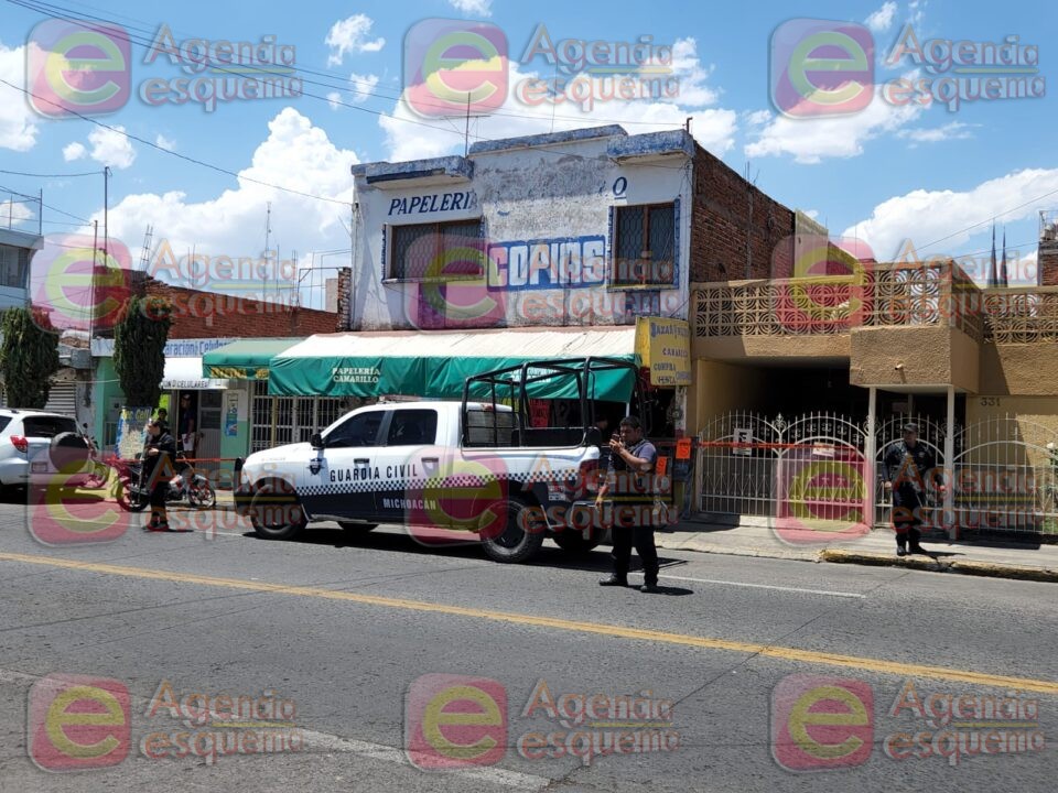 ZAMORA, MICHOACÁN, 13 de Mayo de 2023.- El propietario de un bazar fue ejecutado a balazos la tarde de este sábado a manos de sujetos desconocidos, lo que provocó la movilización de cuerpos policíacos.