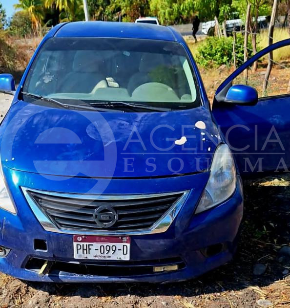 Algunas personas que circulaban sobre dicho tramo carretero observaron que del interior salía sangre del vehículo Nissan tipo Versa de color azul, abandonado sobre una brecha cercana a la carretera Apatzingán – Cuatro Caminos, al acercarse observaron dos cadáveres ensangrentados en los asientos traseros y otro más en la cajuela, por lo que dieron aviso a las autoridades locales a través del 911.