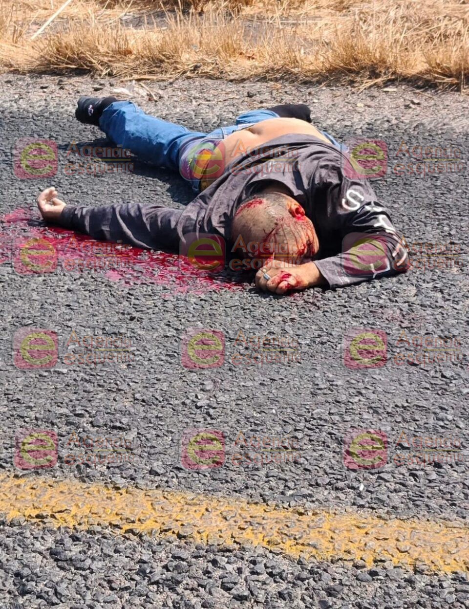 Buenavista, Michoacán, 28 de mayo de 2023.-Un motociclista perdió la vida en forma instantánea, al derrapar y golpearse la cabeza contra el pavimento.