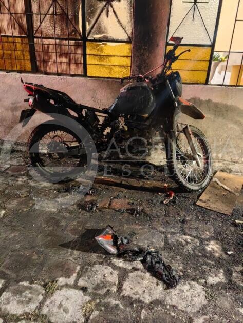 Uruapan, Michoacán, 23 de febrero de 2024.- Delincuentes arrojaron una bomba «molotov» a una motocicleta estacionada por fuera del templo de la colonia Riyitos, al poniente de la ciudad, hecho que provocó la movilización elementos de distintas corporaciones policiacas pero los hechores escaparon.
