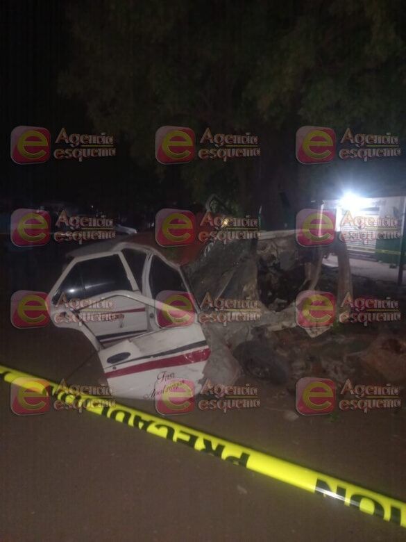 Apatzingán, Mich.-03 de marzo del 2023.-Un taxista encontró una trágica muerte esta madrugada, al estrellar su taxi contra un árbol en las inmediaciones de La Presa del Rosario, de esta localidad.