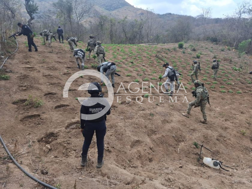 Arteaga, Michoacán, 11 de febrero del 2026.-Dentro de las acciones emprendidas contra el hampa en el Estado, autoridades michoacanas y federales destruyeron un sembradío de mariguana en esta localidad.
