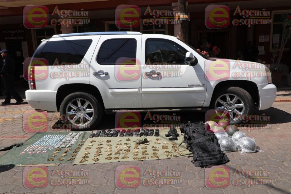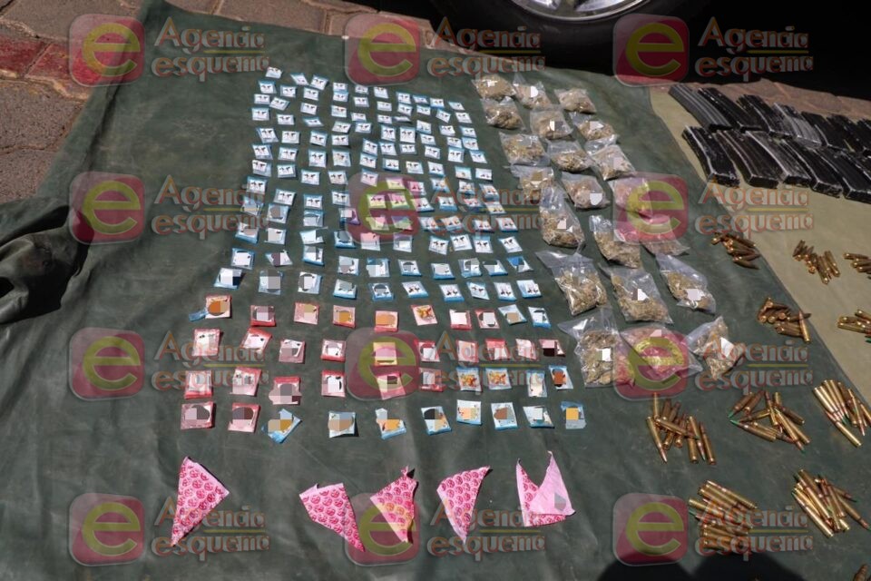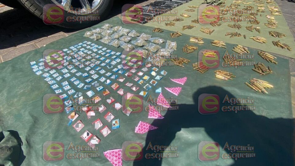 En el operativo en el que los representantes de la ley buscan garantizar la paz de las familias que habitan esta zona del estado, también aseguraron una camioneta blindada, 700 cartuchos útiles, un fusil de asalto y 181 dosis de diversas drogas.