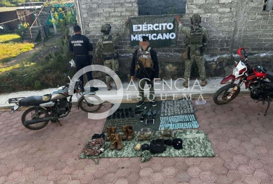 Salvador Escalante, 09 de enero de 2025..- Un hombre de nacional colombiana señalado de ser jefe de plaza de un grupo delictivo que opera en esta región de Salvador Escalante fue detenido por agentes de la Guardia Civil, militares y policías municipales tras un operativo; le aseguraron armamento y granadas.