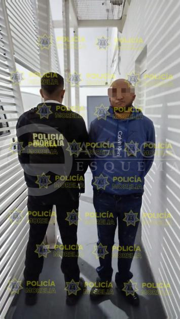 Morelia, Michoacán, 5 de marzo de 2025.- Elementos de la Policía Morelia detuvieron a un sujeto que tiraba balazos al aire en el fraccionamiento Villas del Pedregal.