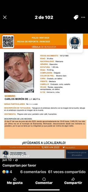 La última vez que Carlos y Ricardo Morón de la Mora, de 34 y 20 años de edad, respectivamente, fueron vistos por última vez, fue el 7 de junio del 2025 pasadas las 18:00 horas, en este municipio de Buenavista Tomatlán.