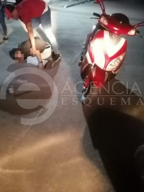Iker se desplazaba a bordo de una motocicleta Italika color azul, tras el impacto quedó tendido sobre la cinta asfáltica y fue auxiliado por sus familiares para posteriormente ser trasladado al hospital.