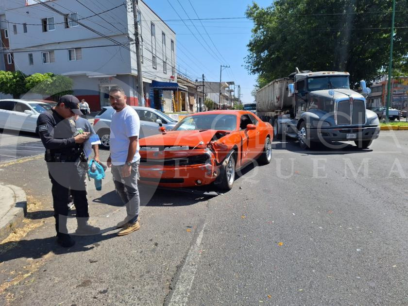 Sobre esa vialidad, con dirección de oriente a poniente, circulaba un vehículo Chevrolet, Charger, color naranja, sin placas y al llegar a la esquina con la calle Prolongación Durango, se impactó contra un automóvil de la marca Audi, con matrícula PPV-119-D.