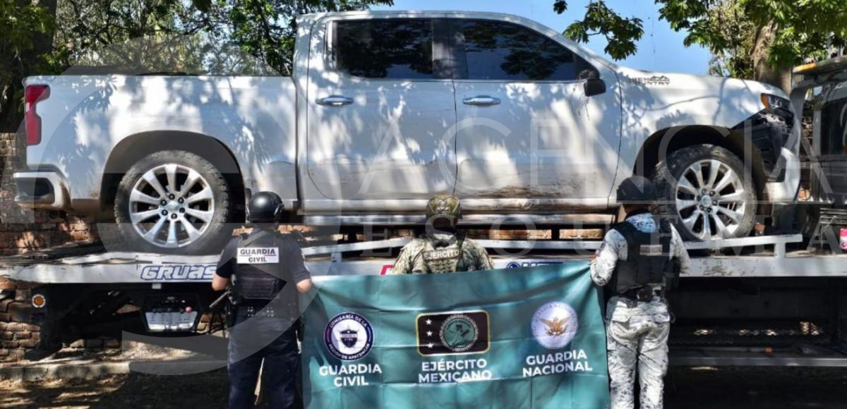 Fue en las inmediaciones de la citada localidad, donde los agentes de la Guardia Civil, del Ejército Mexicano y la Guardia Nacional (GN), intensificaron sus recorridos de prevención del delito; ahí encontraron una camioneta de la marca Chevrolet, línea Silverado, abandonada en la zona de terracería sin placas de circulación.