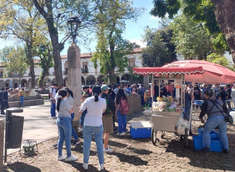 PÁTZCUARO MICHOACÁN., 27 de febrero.- Un sujeto fue acribillado a balazos la tarde de este lunes en la plaza Vasco de Quiroga, en pleno centro de la ciudad de Pátzcuaro, frente a la Presidencia municipal.
