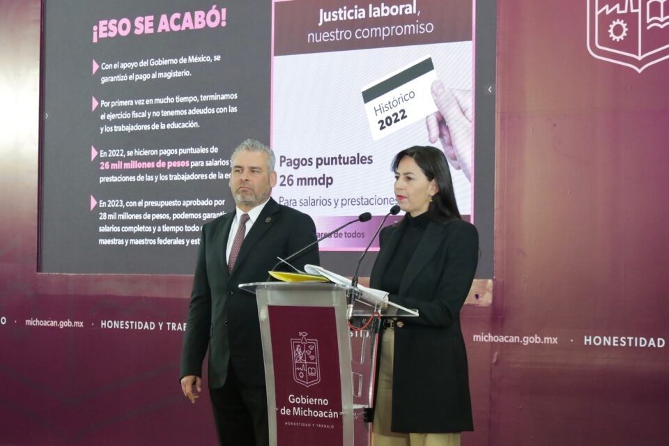 «Los adeudos eran de 8 mil 400 millones de pesos, pero se solventaron con el apoyo de la Federación para que, por primera vez en muchos años, cerrara el ejercicio fiscal 2022 sin pendientes con el magisterio», aseguró.