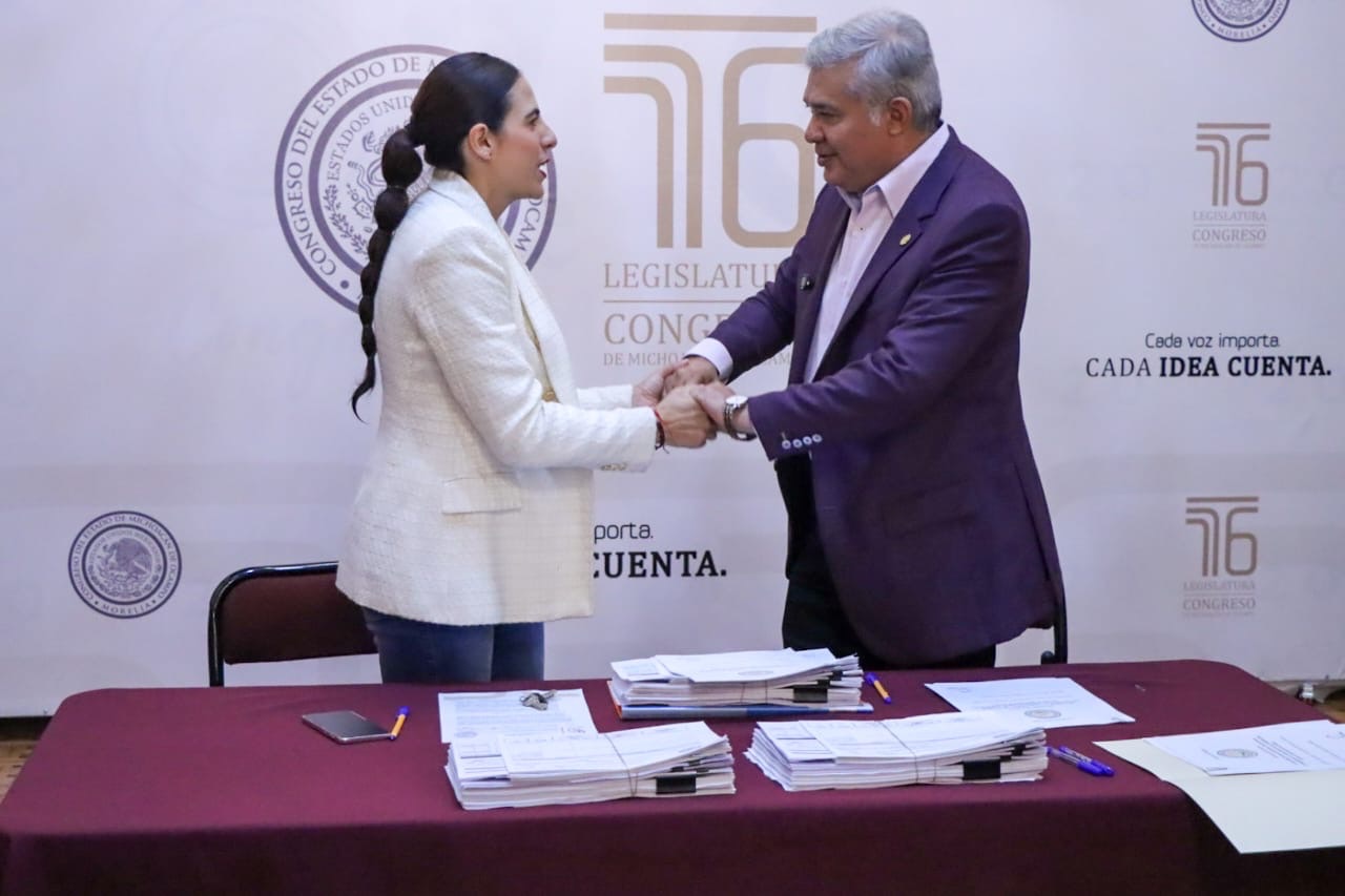 *Morelia, Michoacán, 26 de junio de 2025*.- Al hacer un reconocimiento público por el excelente trabajo y representación al frente de la Mesa Directiva, la diputada Giulianna Bugarini Torres recibió formalmente de manos del legislador Juan Antonio Magaña de la Mora, la Presidencia de la Mesa Directiva del Congreso del Estado.
