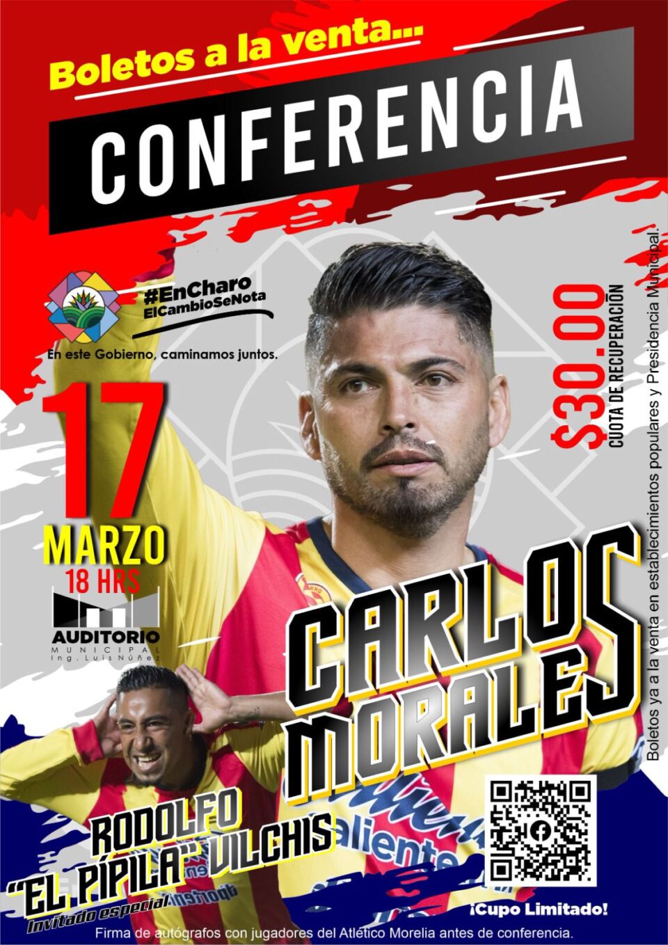 *Charo, Michoacán., a 13 de marzo de 2022.-* Como parte de la estrategia para fortalecer una cultura de paz y prevenir el delito, el Gobierno de Charo ofrecerá este viernes 17 de marzo, una conferencia magistral, a cargo del ídolo del futbol michoacano, Carlos “El Eterno” Morales.
