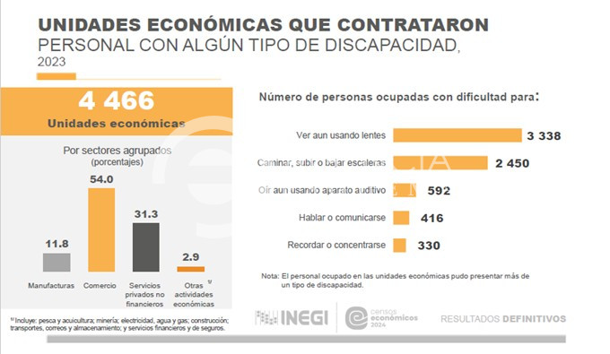 Asimismo, el Censo del INEGI revela que las personas que tienen problemas para recordar o concentrarse son 167 mil 795. En el caso de aquellos a los que se les dificulta bañarse, vestirse o comer suman 75 813, y para hablar o comunicarse son 72 mil 611, en tanto que, con condición mental son 57 mil 091 personas.