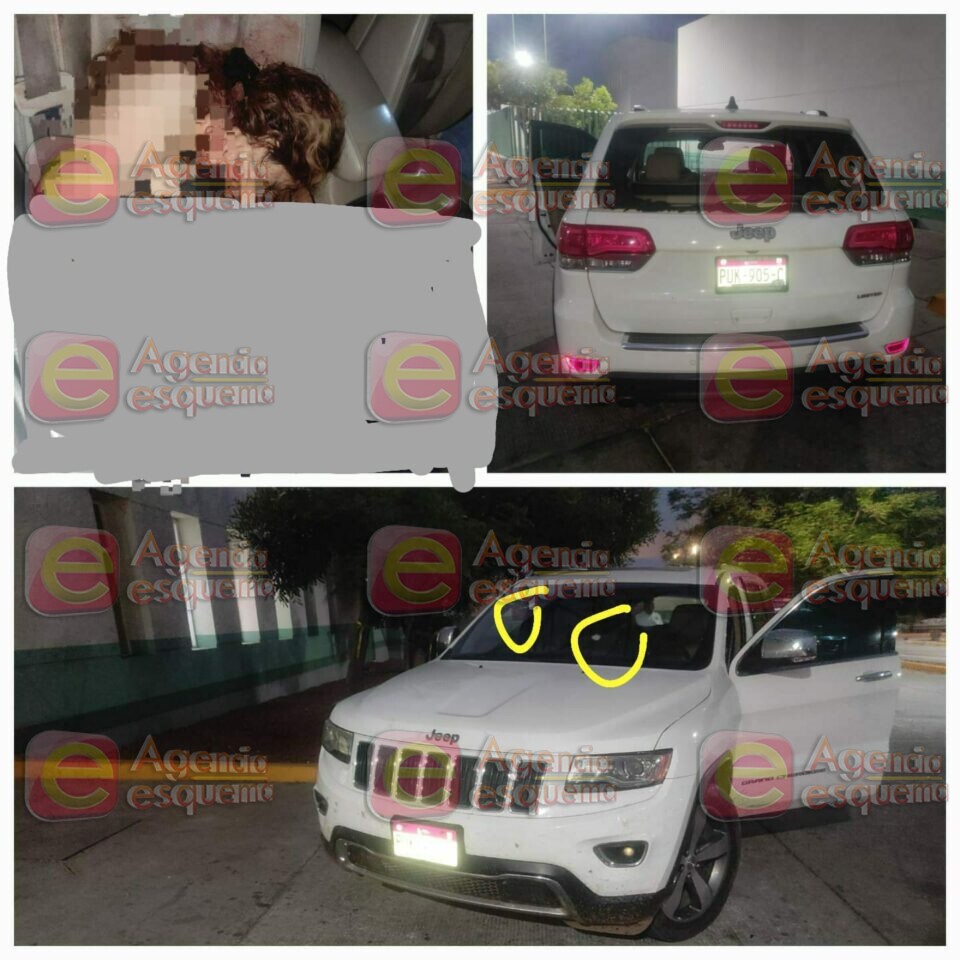 La infortunada se encontraba dentro de una camioneta Grand Cherokee, color blanco, modelo 2015, con placas de circulación PUK-905C, por lo que en trabajo coordinado la Policía de Investigación, el Ministerio Público y especialistas en materia pericial efectuaron las diligencias necesarias, embalando también dos fragmentos metálicos, presuntamente de las balas disparadas por la policía.