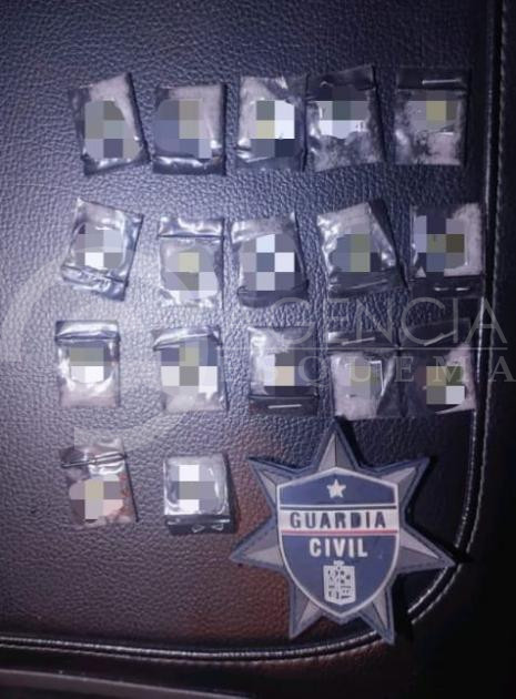 Durante patrullajes disuasivos efectuados sobre la colonia Guadalupe, los agentes de la Guardia Civil realizaron el aseguramiento de dos mujeres de 45 y 23 años, respectivamente, mismas que llevaban consigo las citadas dosis de droga.