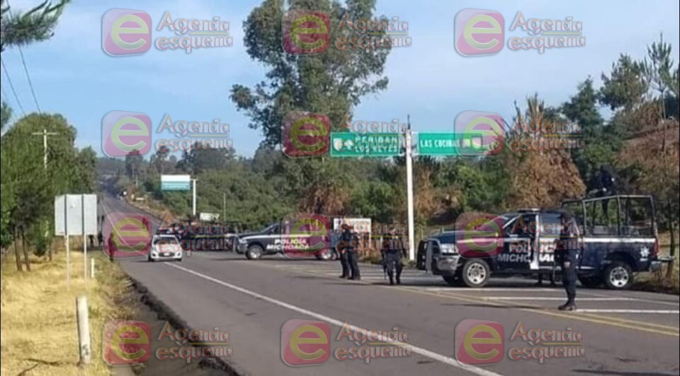 Uruapan, Michoacán, 19 de febrero de 2024.- Los cadáveres maniatados y baleados de dos hombres hasta el momento desconocidos fueron localizados un costado de la carretera Uruapan-Los Reyes, cerca de la comunidad indígena de Angahuan.