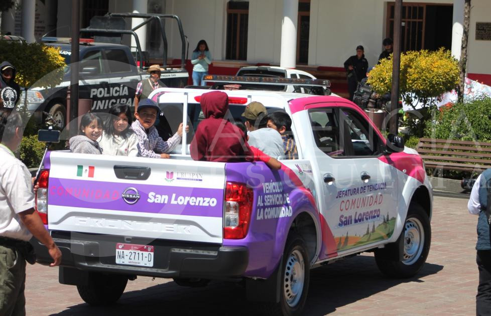 San Lorenzo (Uruapan), Michoacán, 9 de marzo de 2025.- Con la finalidad de apoyar a la población para en caso de alguna contingencia, las autoridades municipales entregaron una camioneta con funciones de patrulla, en una ceremonia verificada en la plaza principal de esta comunidad de San Lorenzo.