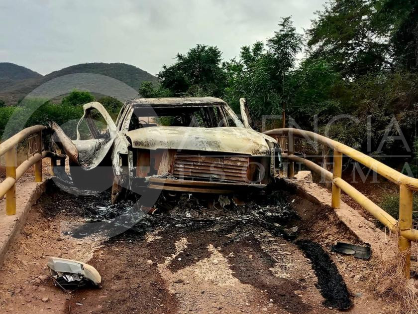 - La tragedia ocurrió en la comunidad Las Bateas; las autoridades encontraron una Suburban calcinada y al interior cuatro armas largas