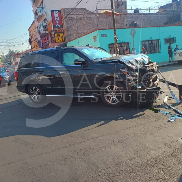 Morelia, Michoacán, 1 de mayo de 2025.- Este jueves se registró un accidente en el cruce de las calles Laguna de la Magdalena y Boca Negra, los vehículos involucrados es una Ford Expedition color verde y una NP 300 de la marca Nissan que terminó volcada tras el impacto.