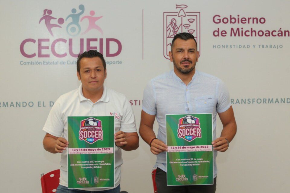 *Morelia, Michoacán, 3 de mayo de 2023.-* Con motivo al 17 de mayo, Día Internacional contra la Homofobia, Transfobia, y Bifobia, se celebrará la primera edición del Mundialito Pride Soccer, organizado por la Comisión Estatal de Cultura Física y Deporte (Cecufid), los días 13 y 14 de mayo, en el Centro Deportivo Ejército de la Revolución (CDER), donde se contempla la participación de ocho conjuntos femeniles y ocho varoniles.