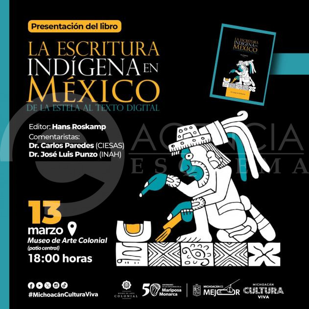 Morelia, Michoacán, 10 de marzo de 2025.- El próximo jueves se presentará el libro «La escritura indígena en México: de la estela al texto digital», editado por Hans Roskamp, en el museo de Arte Colonial a las 18:00 horas.