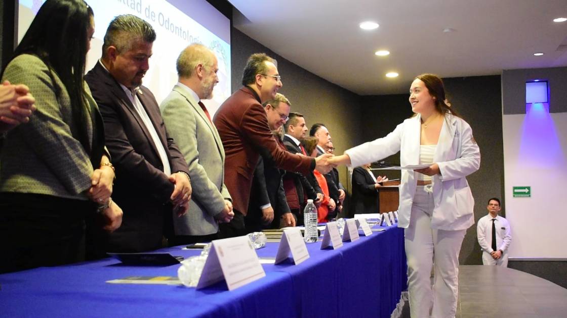 Con la representación de la rectora Yarabí Ávila González, el funcionario felicitó a la comunidad y comentó que desde el ámbito académico, la Facultad de Odontología ha crecido, al referir que se incrementó el número de profesoras y profesores con el reconocimiento de Perfil Deseable dado por la Secretaría de Educación Pública (SEP), además este año se cuadruplicó el número de académicos y académicas de tiempo completo que recibirán un estímulo por su desempeño, «esto es algo que nunca se había dado en la facultad».