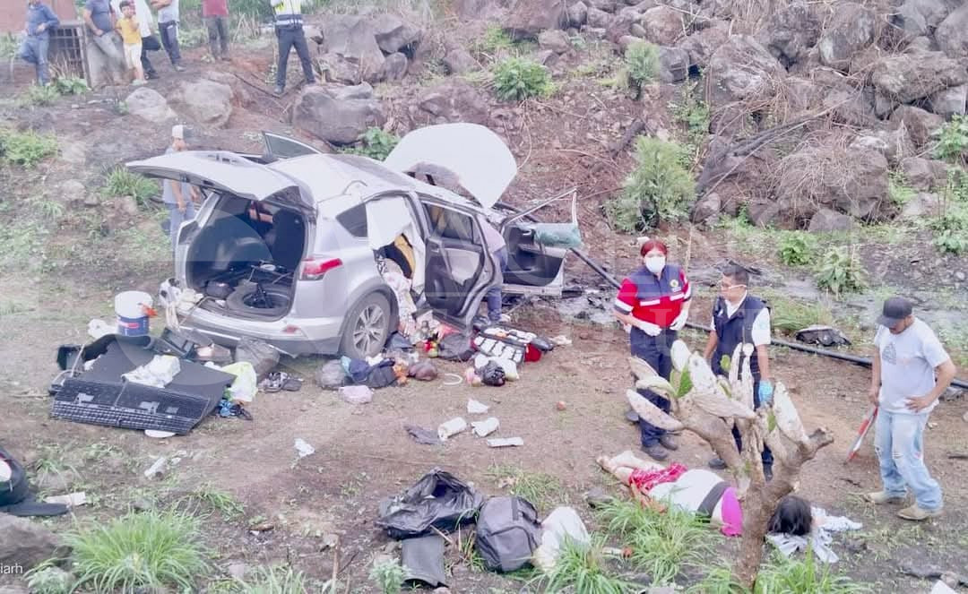 El accidente ocurrió a la altura del kilómetro 5 aproximadamente, donde el conductor de la camioneta color gris donde viajaba la familia perdió el control aparentemente debido al exceso de velocidad y abandonaron la cinta asfáltica para dar varias volteretas y caer a un desnivel.