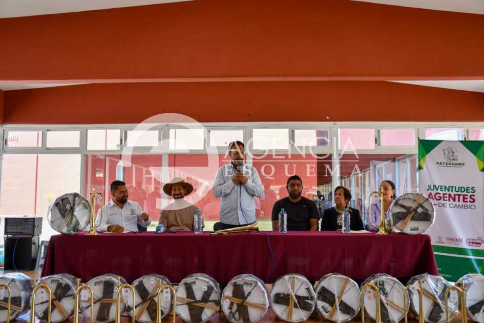 Pátzcuaro, Michoacán, 18 de marzo de 2026.- Con el objetivo de fortalecer la formación cívica y el desarrollo integral de niñas y niños, el presidente municipal de Pátzcuaro, Julio Arreola, realizó la entrega de instrumentos para bandas de guerra a instituciones educativas de nivel primaria del municipio.