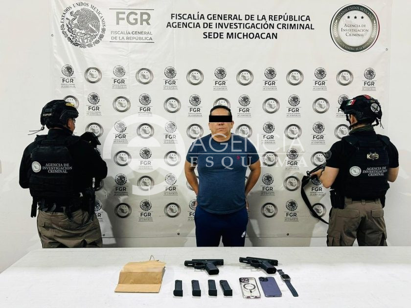 Morelia, Michoacán, 04 de diciembre del 2025.-En poder de dos pistolas calibre .9 milímetros, un sujeto fue detenido por efectivos de la Policía Federal Ministerial en esta ciudad de Morelia, capital de Michoacán.