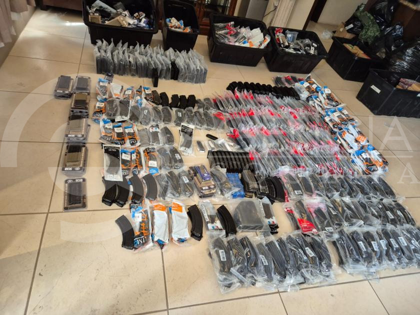 Cinco rifles calibre .556, dos escopetas calibre .12 milímetros, dos ametralladoras calibre 5.56, dos Barret calibre .50 milímetros, un lanza granadas calibre .40 milímetros, cuatro granadas calibre .40 milímetros, una granada calibre .40 X 46 milímetros.