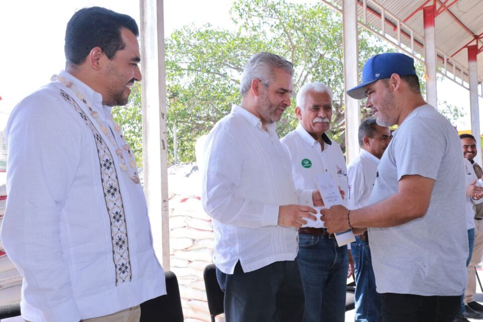 «Hoy hacemos entrega de 2 mil 310 toneladas para productores de Aquila, Coalcomán, Coahuayana y Chinicuila, sumando esfuerzos gobierno estatal y federal en beneficio del