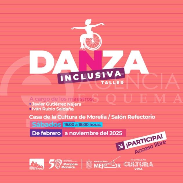 Morelia, Michoacán, 19 de febrero de 2025.- Los sábados se impartirá un taller de danza para personas con discapacidad por lo que invitan a adolescentes y adultos.