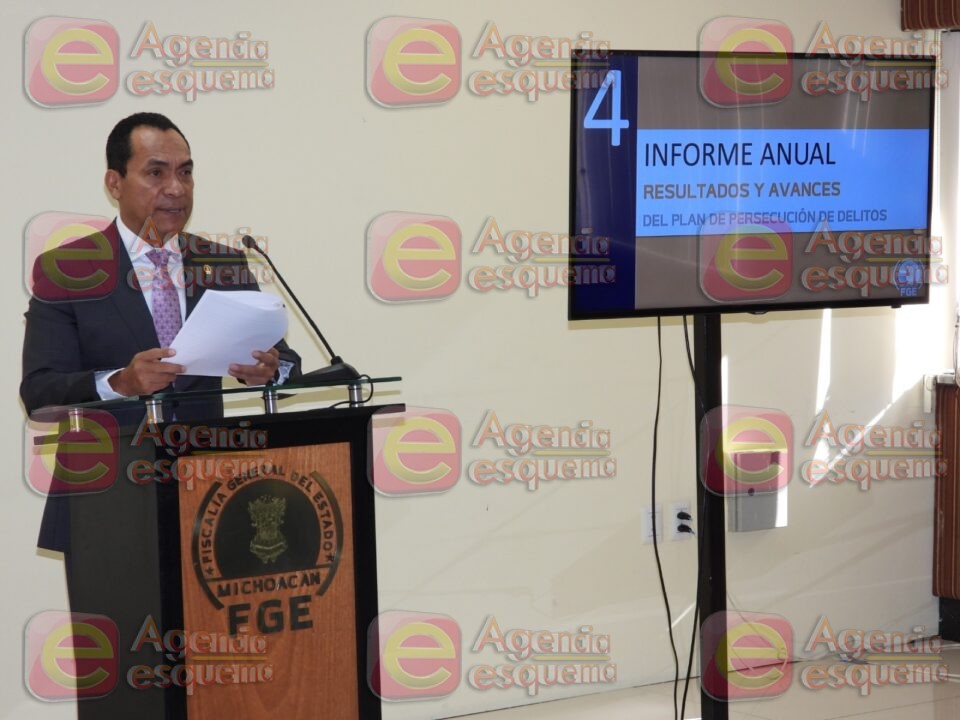 En el marco de la entrega del Cuarto Informe Anual de Resultados y Avances del Plan de Persecución de Delitos, el Fiscal General del Estado de Michoacán (FGE) Adrián López Solís, reiteró el compromiso de mantener el empeño a favor de las víctimas delito y su derecho a la justicia.