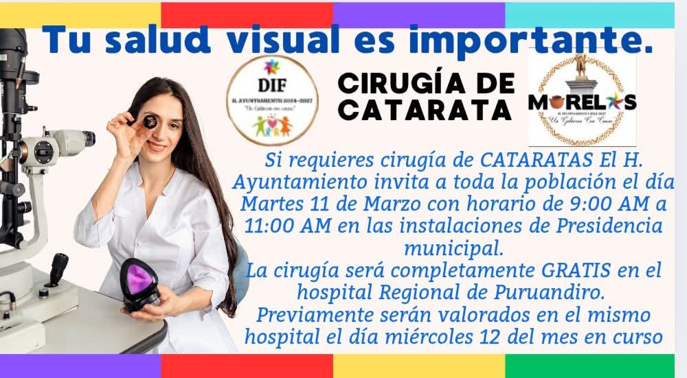 El Ayuntamiento de Morelos y el Sistema DIF Municipal reiteran su compromiso con la salud de la población y exhortan a quienes necesiten esta intervención quirúrgica a aprovechar esta oportunidad para mejorar su visión y calidad de vida.