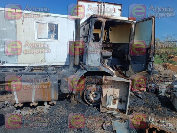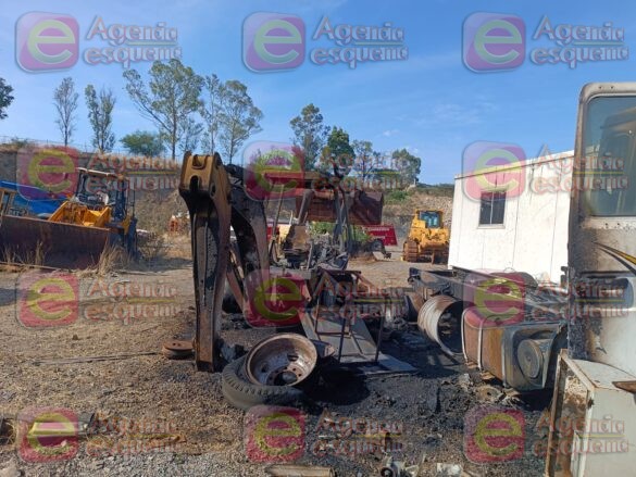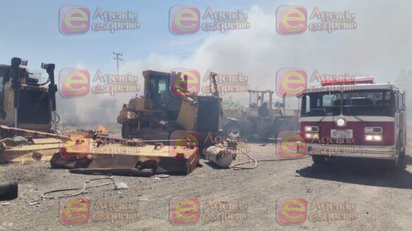 Tarímbaro, Michoacán, 29 de abril de 2023.- La quema de un pastizal se salió de control y llego a un parque vehicular de una constructora en donde prendió una maquina y dos camiones.