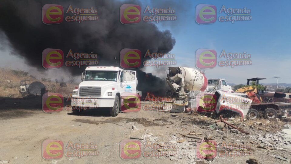 Tarímbaro, Michoacán, 29 de abril de 2023.- La quema de un pastizal se salió de control y llego a un parque vehicular de una constructora en donde prendió una maquina y dos camiones.