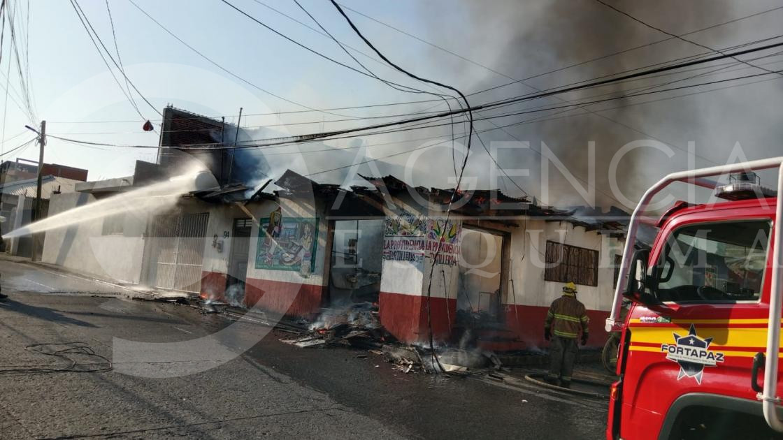 Uruapan, Michoacán, 26 de abril de 2025.- Este sábado se registró un incendio en una tortillería sobre las calles Jiménez y Miguel Treviño, al poniente de la ciudad.
