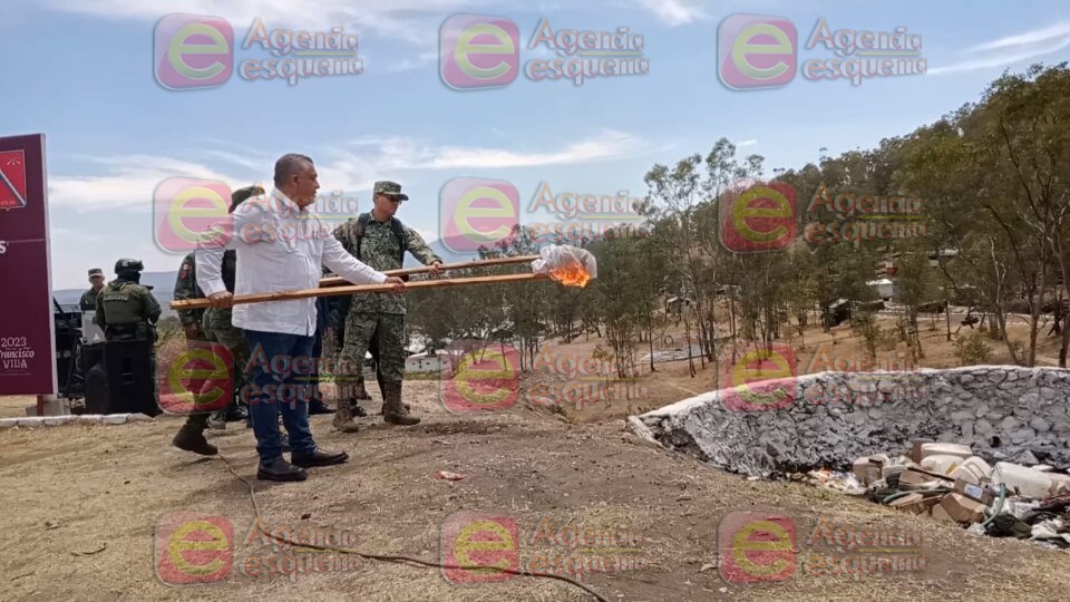 En un escueto comunicado de la 21 Zona Militar en el que ni siquiera revela el periodo en que dicha droga fue asegurada, dice que fueron 313 kilos de mariguana, 250 litros de metanfetamina 6 mil 704 pastillas psicotrópicas y 33 objetos los que fueron incinerados.