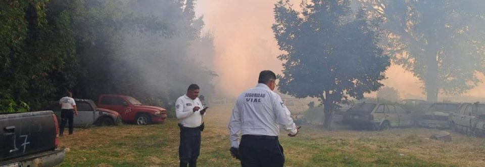 Morelia, Michoacán, 18 de noviembre del 2025.-En forma intencional le prendieron fuego a uno de los corralones de la Secretaría de Seguridad Pública de Michoacán, sin que por fortuna se registraran víctimas que lamentar.