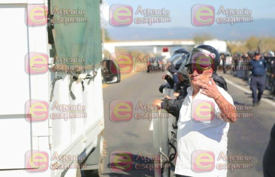 Morelia, Mich. 06 de febrero de 2024. En una operación liderada por el subsecretario de Operación Policial, José Ortega Silva, el Agrupamiento de Restablecimiento del Orden Público de la Guardia Civil procedió a retirar a un grupo de estudiantes que obstaculizaba la carretera Morelia-Pátzcuaro en el kilómetro 24.