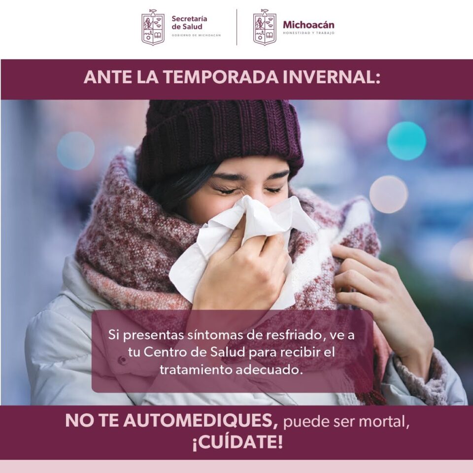 Morelia, Michoacán a 14 de enero del 2023.- La Secretaría de Salud de Michoacán (SSM) recomienda a la población que presente cualquier cuadro gripal que afecte las vías respiratorias, no automedicarse y acudir a consulta a recibir diagnóstico y tratamiento oportuno.
