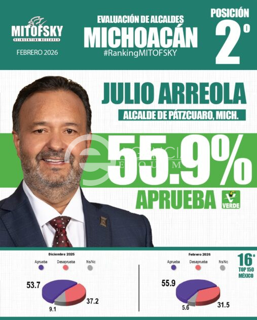 Pátzcuaro, Michoacán, 27 febrero de 2026.- El presidente municipal de Pátzcuaro, Julio Arreola, se posiciona como el segundo mejor alcalde evaluado de Michoacán y se mantiene dentro de los primeros 16 lugares a nivel nacional, de acuerdo con el Ranking MITOFSKY de febrero de 2026, resultado que refleja el respaldo ciudadano al clima de tranquilidad que se ha logrado y sostenido en el municipio.