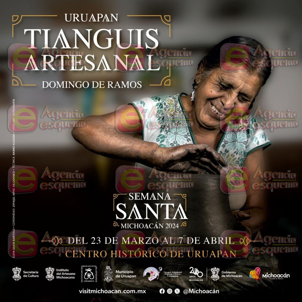 URUAPAN, Michoacán, Michoacán, 17 de marzo de 2024.– Artesanos de la comunidad de San Pedro Zipiajo, municipio de Coeneo, comercializarán sus piezas en las ramas de alfarería y textil de algodón, en el Tianguis Artesanal de Domingo de Ramos, en el centro de Uruapan, del 23 de marzo al 7 de abril.